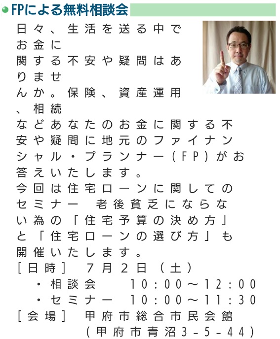 11月13日の「FPフォーラム告知と住宅ローン相談」です